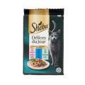 CIBO UMIDO PER GATTI IN SALSA CON SALMONE TONNO E TROTA SHEBA DELICES DU JOUR 6 x 50 GR.