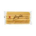 Pasta mafalde Garofalo 500 gr. Ai tempi d’oro dei grandi pastifici artigianali napoletani, i pastai gragnanesi, in concorrenza fra loro, ogni anno creavano qualche nuova trafila di pasta, talvolta ispirandosi ad avvenimenti importanti. La nascita della principessina Mafalda di Savoia, nel novembre 1902, fu salutata con la creazione delle Mafalde, larghe tagliatelle impreziosite da una leggiadra smerlatura, che in breve furono affiancate dalle più piccole Mafaldine.